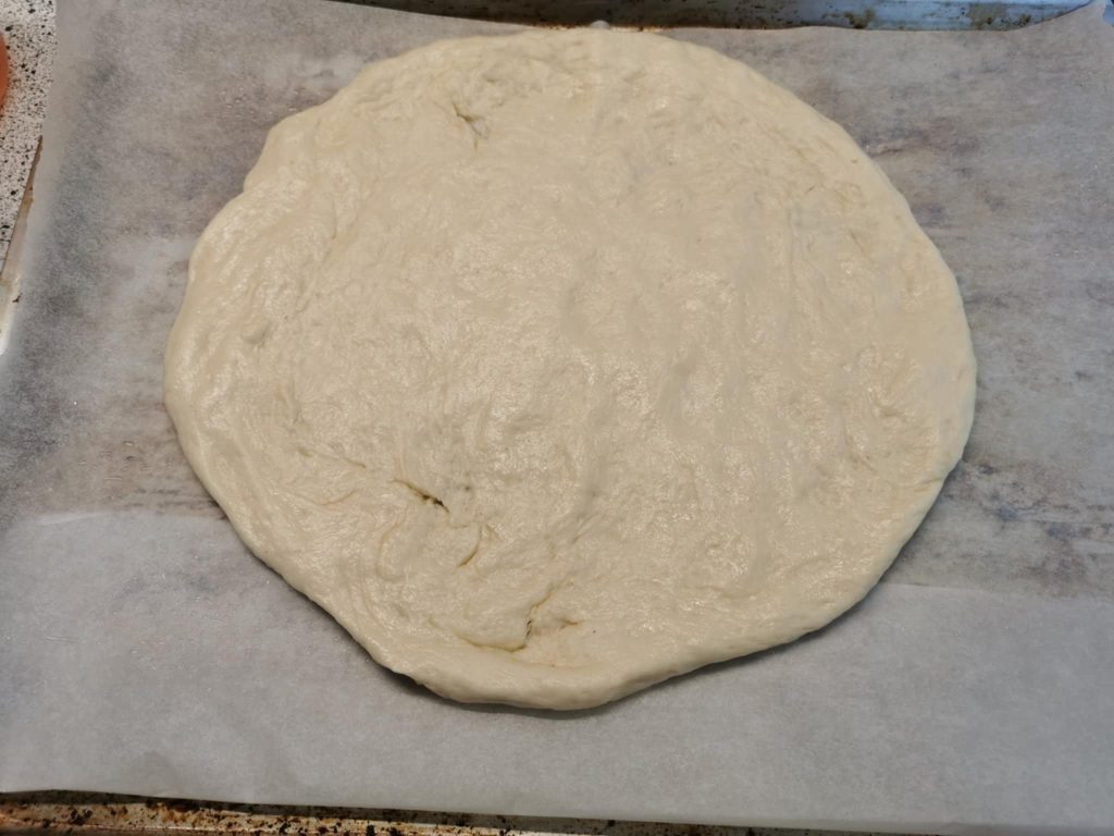 Papírozott vagy csak olajozott tepsibe helyezzük, kiigazítjuk a szélét.