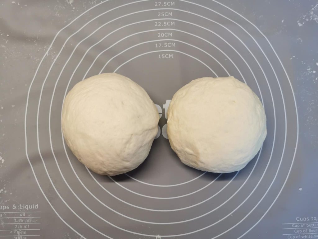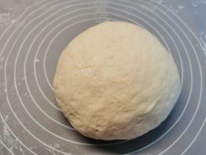 Lisztezett felületen, vagy szilikon nyújtólapon , kettéosztjuk, gombócot formázunk.