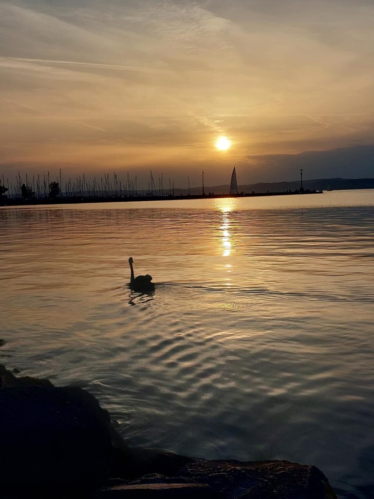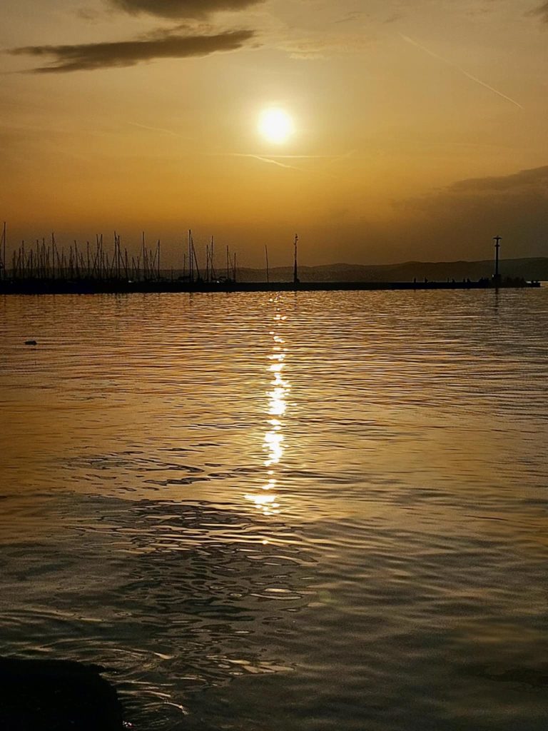 Gyönyörködhettünk a nap lemenő sugaraiban, ami aranyhídként fénylett a vízen.