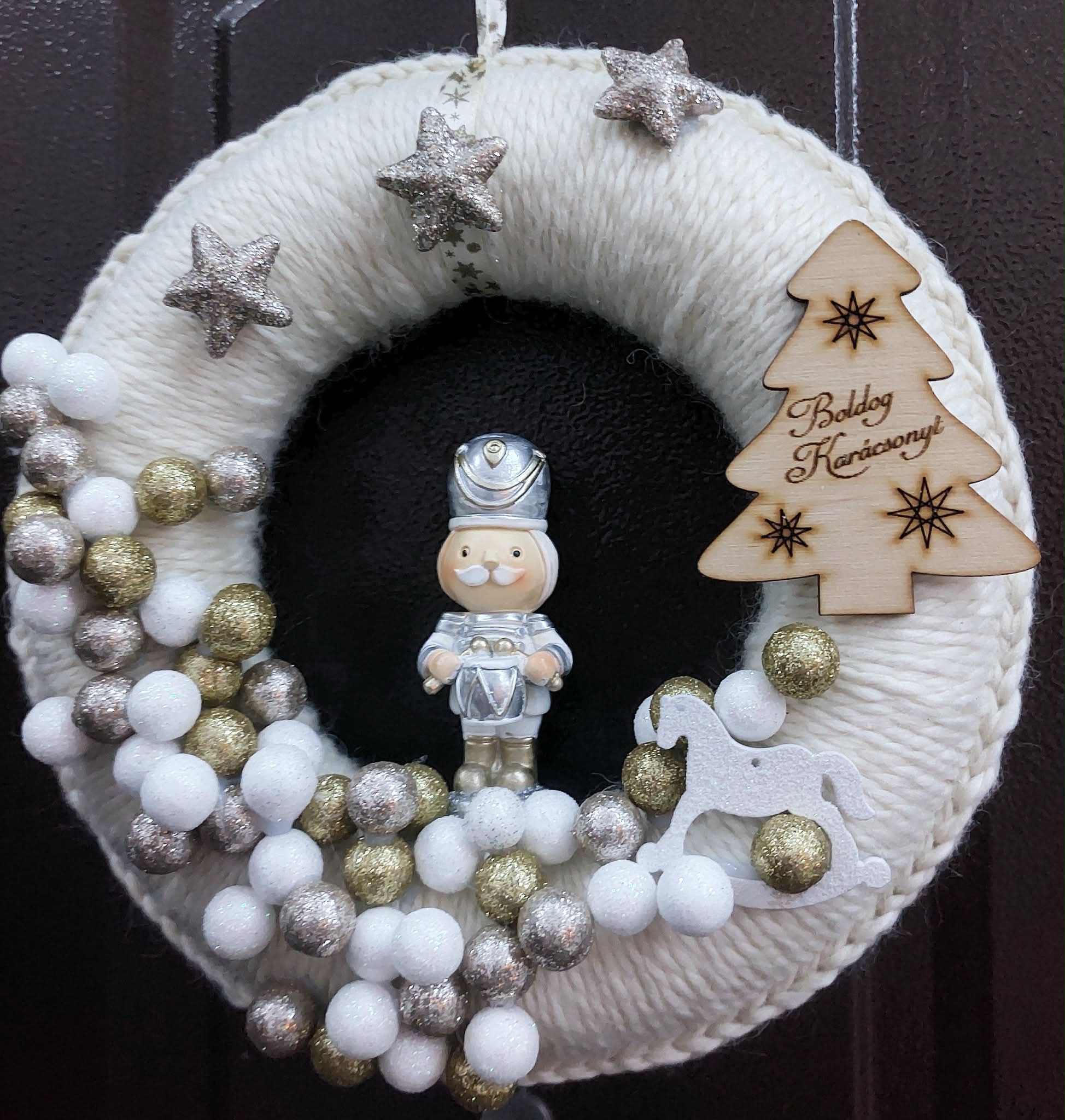 Én egy egyszerű kopogtatót készítettem, amihez csak pár darab hozzávaló kellett és a már korábban meghorgolt alapja.