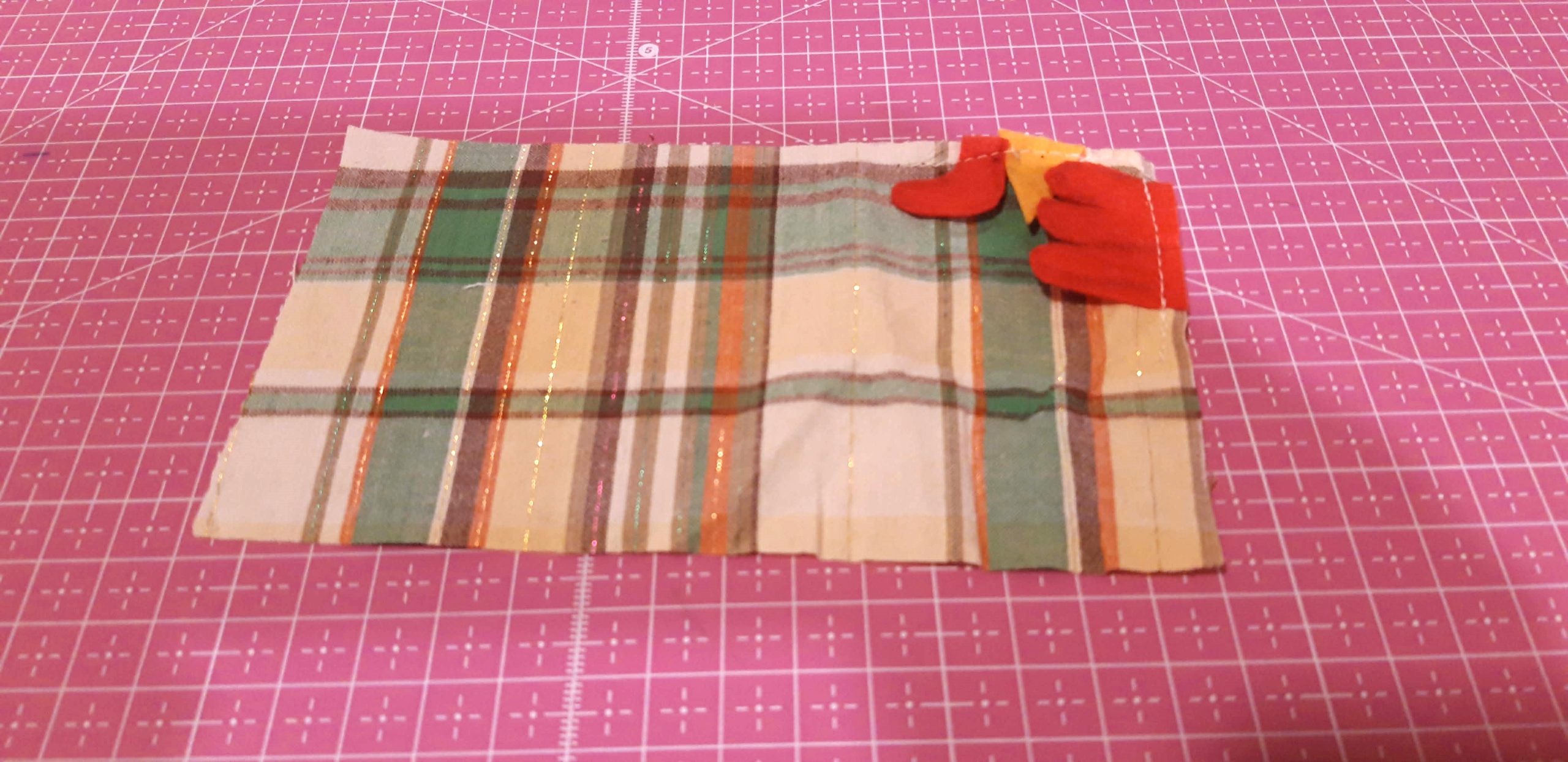 Rávarrtam őket, majd félbehajtottam az anyagot és összevarrtam oldalát. Az alja nyitva maradt. Itt úgy fogtam össze, hogy a varrás középen legyen.