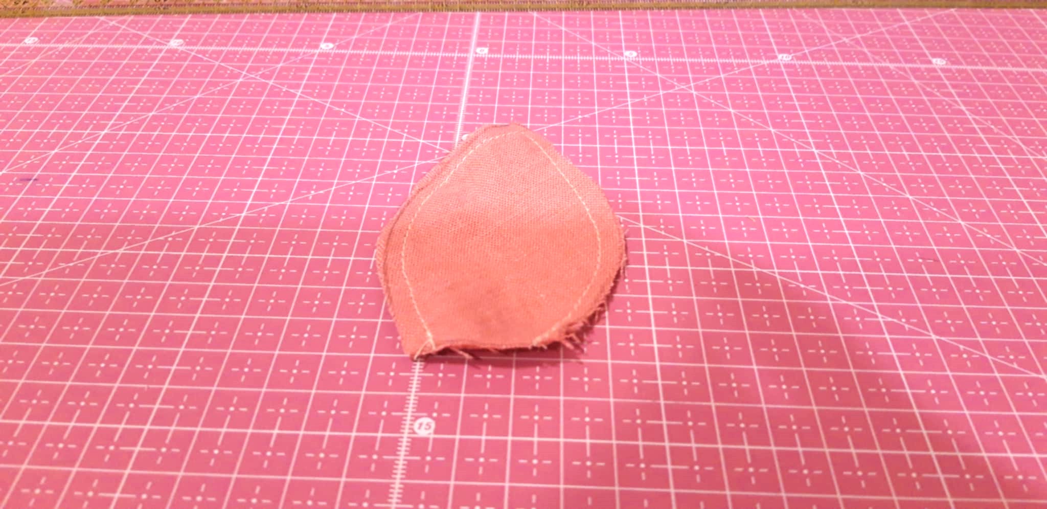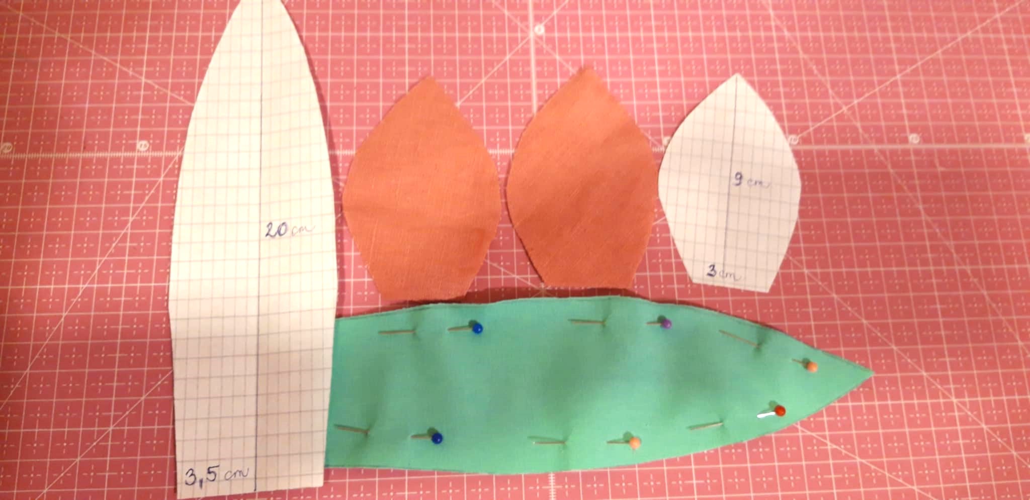 Kiszabtam a képeken látható formákat, plusz egy 20x5 cm-es csíkot a szárnak. A bimbónak és levélnek valót 2-szer. A bimbót az alja kivételével körbevarrtam. Kifordítottam is kitömtem. Az alját befelé kicsit behajtottam és körbefércelve összehúztam.